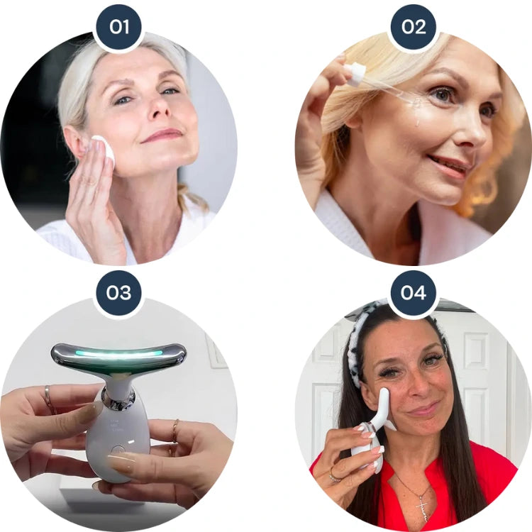 Combina Terapia de Luz Roja, Microcorrientes EMS, Vibraciones Sónicas y Termoterapia en un solo dispositivo avanzado para tensar la piel en casa. Estas 4 potentes tecnologías trabajan juntas para levantar visiblemente la piel flácida, tonificar los músculos faciales, suavizar líneas de marioneta y arrugas de sonrisa, y redefinir el tercio inferior del rostro—¡sin cirugías, agujas ni dolor!